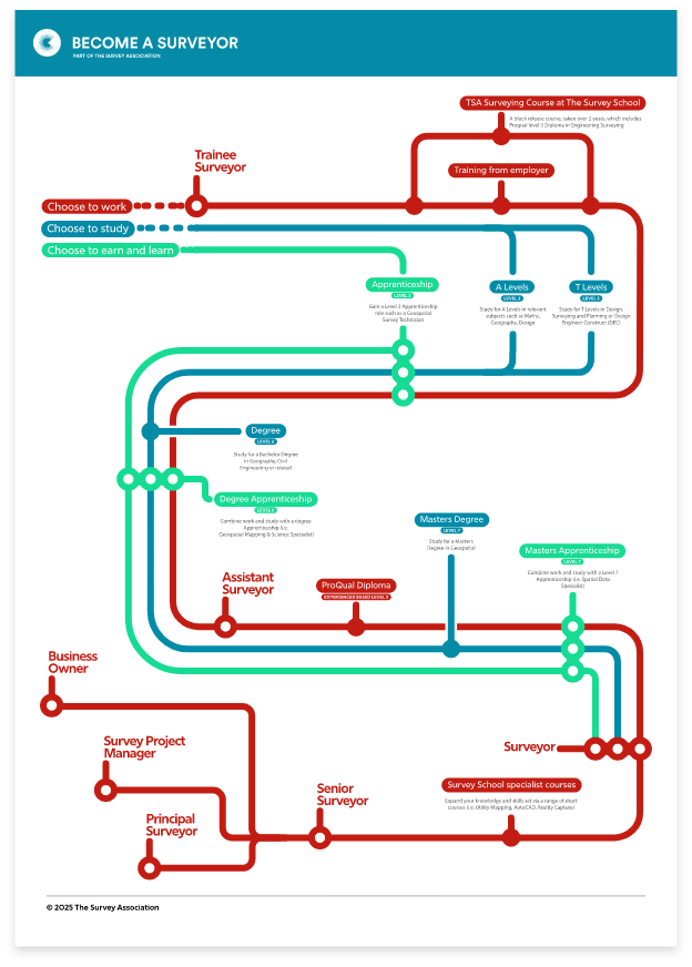 Whether you have GCSEs, A-levels, T-levels, a university degree, or you’re considering apprenticeships, conversion courses, or professional training—there’s a path into the world of surveying for you.