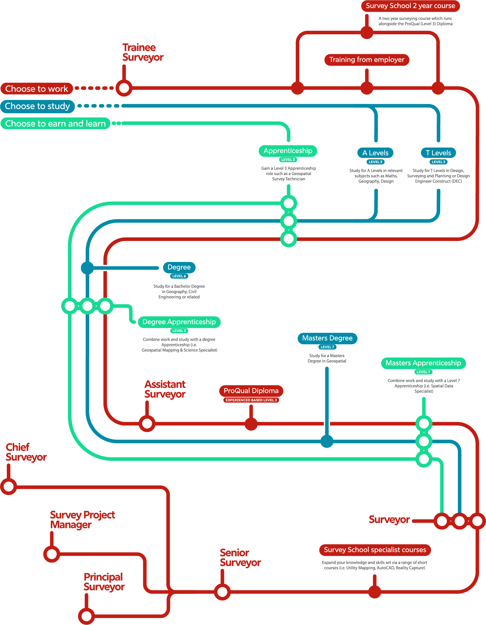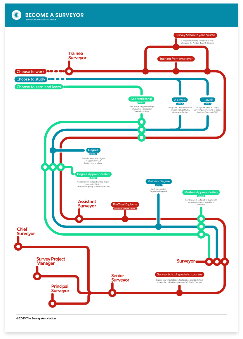 Whether you have GCSEs, A-levels, T-levels, a university degree, or you’re considering apprenticeships, conversion courses, or professional training—there’s a path into the world of surveying for you.